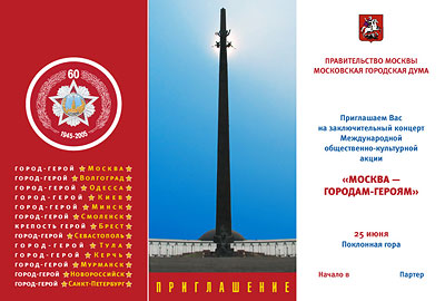 Потом в Московском Доме Фотографии моими фотографиями были проиллюстрированны пригласительные билеты на концерт к 60-летию Победы и плакаты, которые были развешаны по Москве.