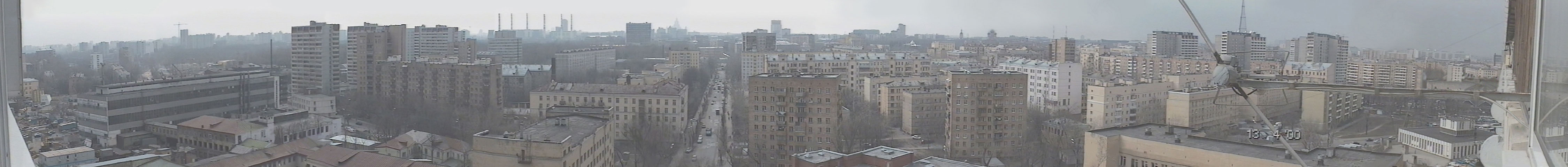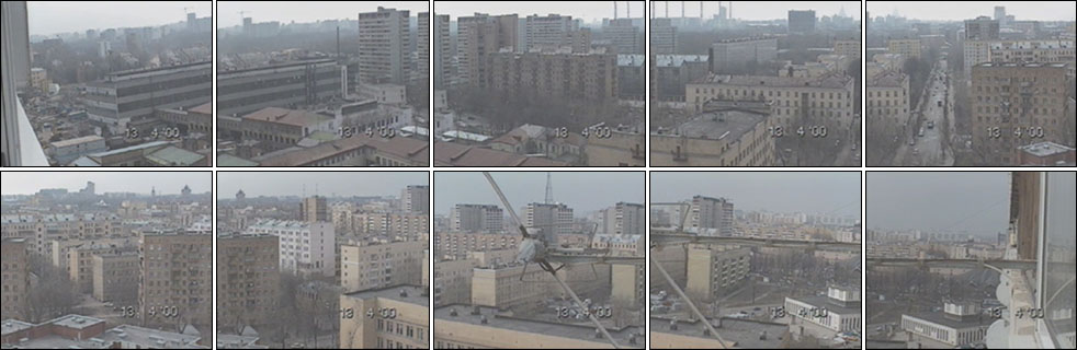 Съёмка производилась видеокамерой без штатива в облачную погоду с сильным ветром. Поэтому кадры получились с разными проекциями наклона и освещённостью. Действия при совмещении всех кадров в одну фотографию-панораму: обрезка кадров, подгонка углов поворота и масштабирование, стыковка кадров, цветокоррекция, ретуширование стыков, убирание дат с каждого кадра, ручная дорисовка, фильтрация.